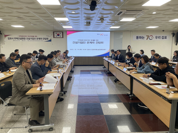 지난 16일 김포시청 민방위 재난실전훈련센터에서 개최된 이번 간담회에는 김포시건설관련기업인협의회, 대한전문건설협회 김포시협의회, 건설기계개별연명사업자협의회 김포시지회, 김포상공회의소 관계자, 지역내 착공 현장을 둔 8개 민간 건설사의 현장소장 및 관계자 등 30여명이 참석했다.