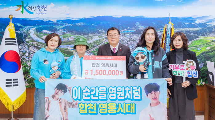 김윤철 합천군수는 “어려운 시기에도 따뜻한 나눔을 실천해주신 ‘합천 영웅시대’ 팬클럽에 감사드리며, 기탁받은 성금은 도움이 필요한 이웃에게 잘 전달될 수 있도록 하겠다”고 감사의 마음을 전했다.