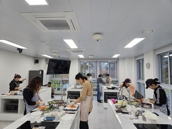 | ▲ 요리교실 프로그램에 참여한 시민들이 건강한 음식을 직접 만들어 보고 있다. (사진=하남시청 제공) |