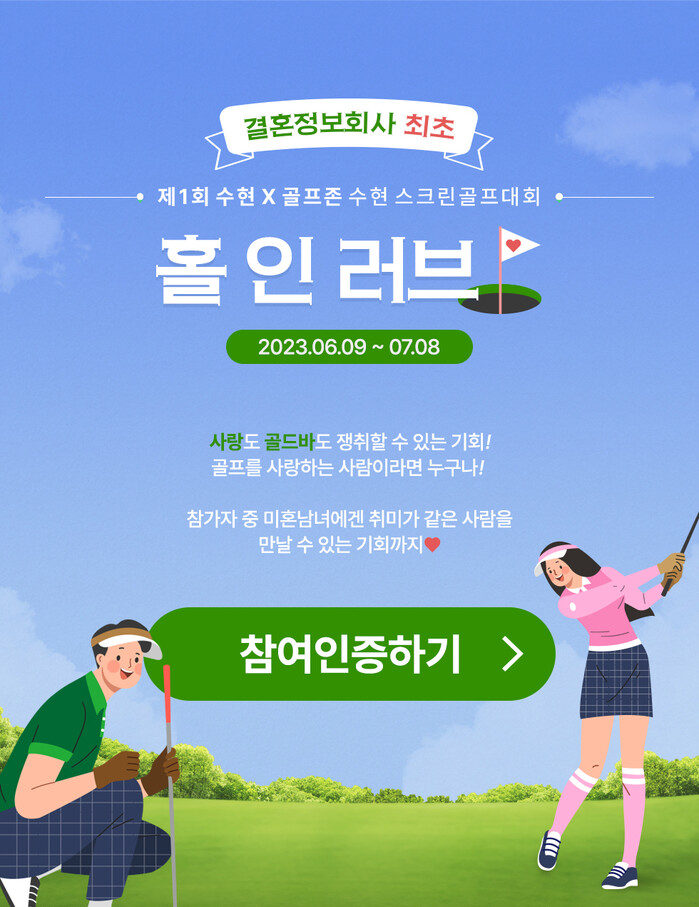 상류층결혼정보회사 노블레스 수현 관계자는 “결혼정보업체 최초로 스크린 골프대회를 개최하니 관심 있는 분들의 많은 참여 부탁드린다. 총 500만원 상당의 상금이 걸린 대회인 만큼 벌써부터 문의가 많이 들어오고 있다. 상금과 함께 사랑도 쟁취할 수 있는 기회가 되어줄 것 같다”고 말했다.