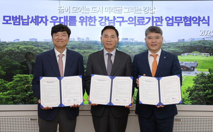 이번 협약은 성실하게 세금을 납부한 모범·유공납세자에게 건강검진 할인 혜택을 제공함으로써, 건전한 납세문화를 확산하고 납세자의 자긍심을 높이기 위해 추진됐다. 협약에 따라 두 의료기관은 강남구의 모범·유공납세자 본인과 배우자, 직계존비속 및 형제자매는 물론, 법인 납세자의 임직원과 그 가족에게 건강검진 비용의 30%를 할인해 제공한다.