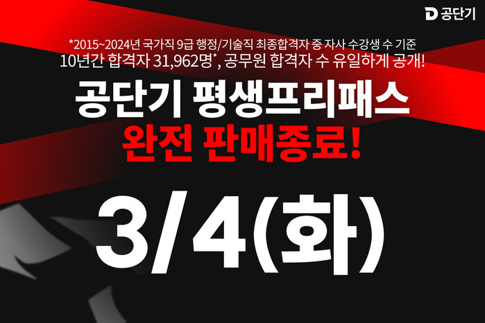 공단기는 그동안 수험생들로부터 평생 패스 상품에 대한 지속적인 재출시 요청을 받아왔으며, 이에 ‘평생 프리미엄 프리패스를’ 한정 판매하기로 결정했다. 해당 상품은 3월 4일까지만 판매되며, 이후에는 신규 구매가 불가능하다.