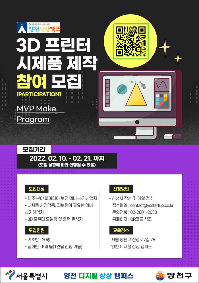 [시민일보 = 이대우 기자] 양천구(구청장 김수영)가 오는 21일까지 3D 프린터를 활용해 아이디어를 실제 모형으로 구현하는 ‘시제품 제작 창업교육’ 프로그램의 참여자를 모집한다.