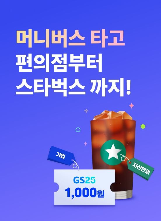 모든 신규 고객에게 GS25 편의점 1천원 쿠폰 제공하고 최초 자산 연결하면 스타벅스 아메리카노 커피쿠폰 추가 제공