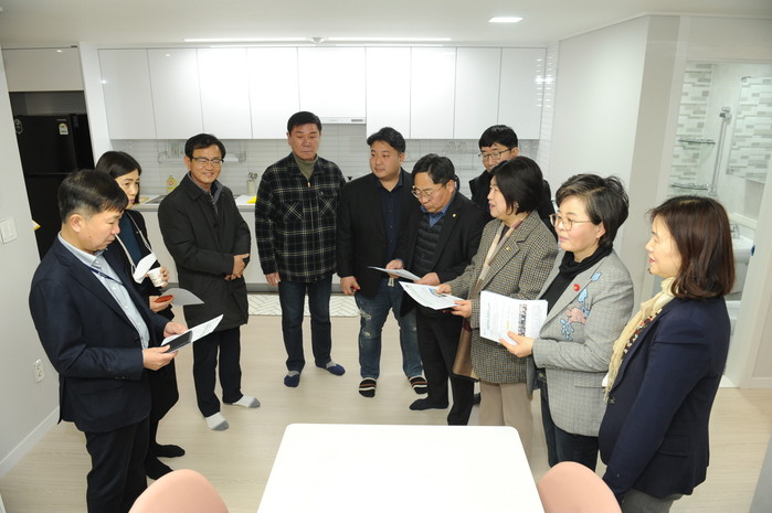 | ▲ 셰어하우스 CON을 찾은 수원시의원들이 관계자에게 설명을 듣고 있다. (사진=수원시의회 제공) |