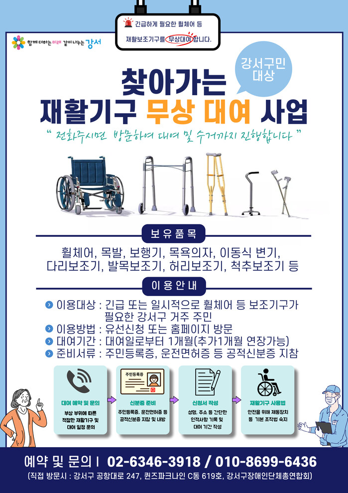 | ▲ ‘찾아가는 재활보조기구 공유·나눔 서비스’ 안내문. (사진=강서구청 제공) |