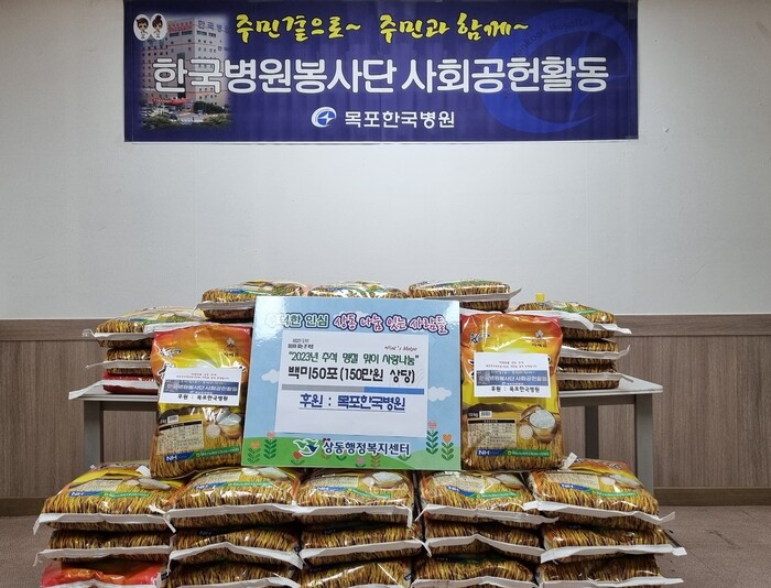 [목포=황승순 기자]지역의료 선두 주자 목포한국병원봉사단(대표 오탁순 원장)이 추석 명절을 맞아 지난달 22일 상동 내의 어려운 이웃을 위해 백미 50포(150만원 상당)를 기탁했다.
