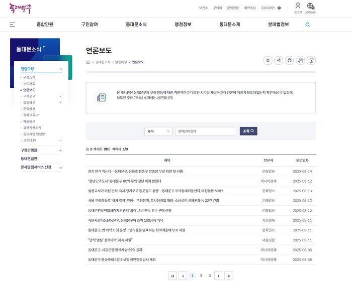 구는 우선 구정 활동에 대한 시민들의 알 권리를 보장하고 지역사회와의 소통을 강화하기 위해 보도자료 게시판을 개편했다.
