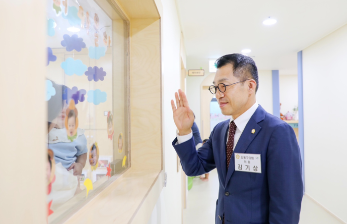 [시민일보 = 이대우 기자] 김기상 서울 강동구의회 도시건설위원회 부위원장(성내1·2·3동, 둔촌1·2동)이 최근 강동숨;터 1층에 위치한 구립둔촌1동어린이집을 방문해 보육 운영 현황을 점검했다.