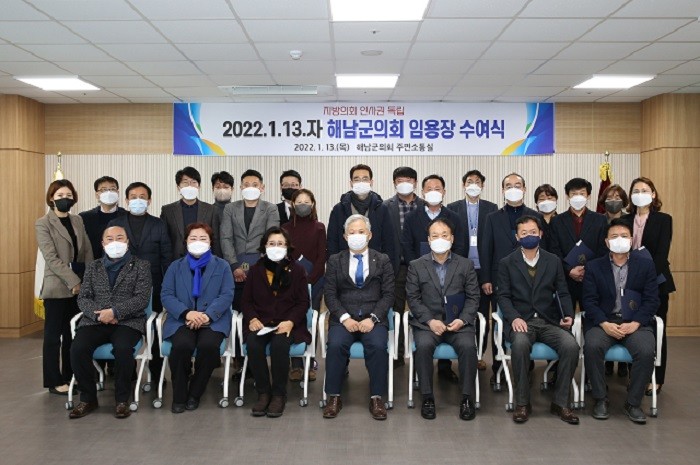 해남군의회는, 지난 해 지방의회 의장에게 인사권을 부여하고 정책지원 인력을 채용하도록 하는 지방자치법이 전부개정 됨에 따라, 후속조치 TF를 자체 구성해 의회사무과 조직진단 및 해남군의회와 해남군과의 인사운영 협약 등을 거쳤고, 지난 제316회 정례회에서는 지방자치법 전부개정과 관련된 조례안과 규칙 안을 정비하면서 인사권 독립의 안정적인 정착을 준비해 왔다.