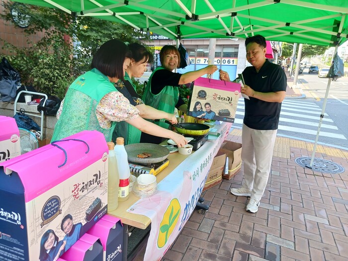 이날 행사는 새마을부녀회에서 주민들로부터 기부받은 중고 의류 등의 각종 생활용품과 한가위 맞이 김, 참깨, 참기름, 들기름 등을 판매하는 자리였다. 수익금은 복지사각지대 주민과 취약계층을 위해 값지게 사용할 예정이다.
