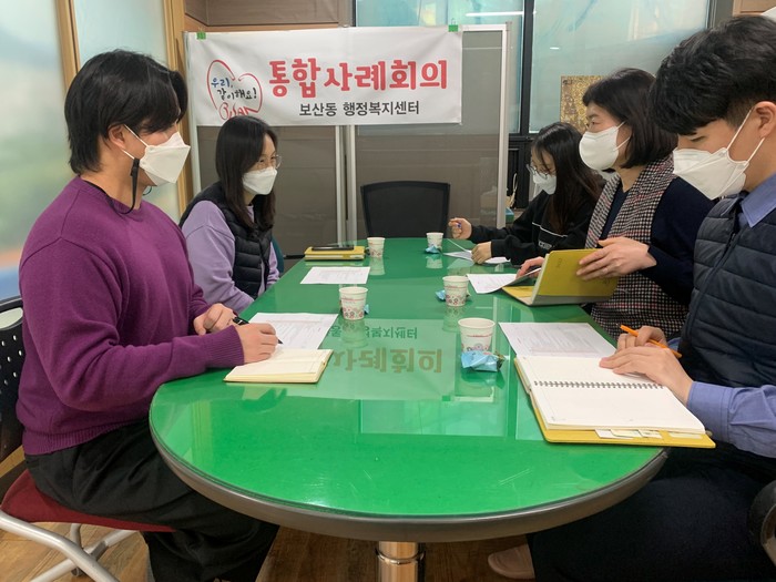 경기 동두천시 보산동행정복지센터가 지난 8일 복지사각지대 대상자로 발굴된 대상자의 위기상황 해소를 위한 내부 사례회의를 개최했다. 이날 회의에서는 코로나19 상황에 경제적 어려움이 있는 4가구의 사례관리 대상자 선정여부가 논의됐다. 사진은 이날 회의가 진행되는 모습. (사진제공=동두천시청)
