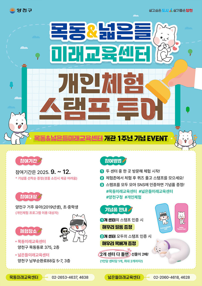 이기재 구청장은 “미래세대가 핵심 기술을 즐겁게 배우는 것이 곧 미래를 준비하는 일인 만큼 이번 스탬프 투어는 아이들이 놀이하듯 체험하며 미래기술을 자연스럽게 익힐 수 있는 좋은 기회가 될 것이다”며 “앞으로도 누구나 쉽게 참여할 수 있는 체험 기반 미래교육을 지속적으로 확대해 나가겠다”고 밝혔다.