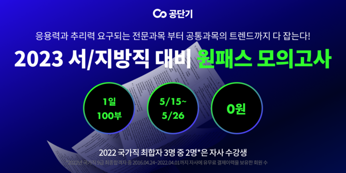 공단기는 2023 서울시·지방직 시험의 전문과목 난이도 상승을 예상하고 있어 많은 수험생들이 더욱 철저하게 대비할 수 있도록 이번 모의고사를 준비하게 됐다.