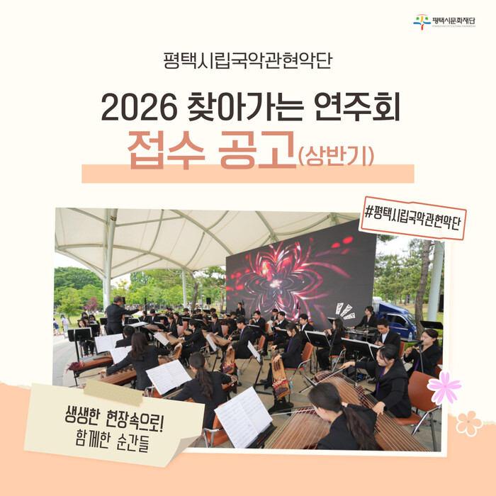 [평택=오왕석 기자] 평택시립국악관현악단은 시민들의 문화 향유 기회를 확대하기 위해 2026년 찾아가는 연주회 상반기 참여단체를 모집한다.