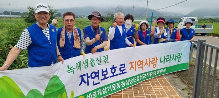 이에 바르게 살기 회원들은 무더운 날씨에도 불구하고, 예취기와 각종 장비를 동원하여 인도를 덮친 잡풀과 넝쿨을 제거하는 등 구슬땀을 흘렸다.
