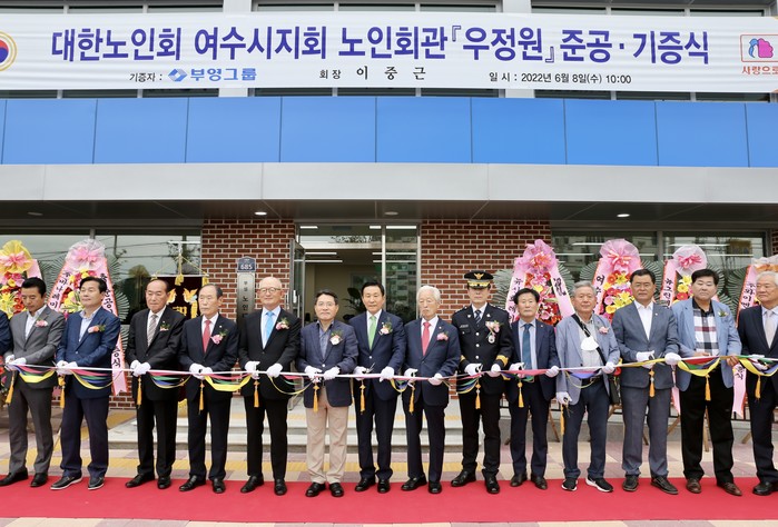 [시민일보 = 홍덕표 기자] 부영그룹은 8일 전남 여수시 노인들의 복지 증진을 위해 노인회관 '우정원(宇庭園)'을 신축해 대한노인회 여수시지회에 기부했다.