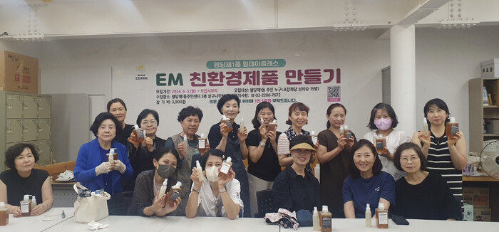 | ▲ 지난 19일 열린 EM 활용 한방샴푸와 주방세제 만들기 수업 모습 (사진=성동구청 제공) |