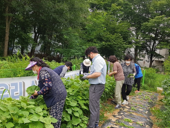 | ▲ 지난해 아파트 공동체 활성화 프로그램 가양7단지아파트 텃밭 나눔 활동 모습. (사진제공=강서구청) |