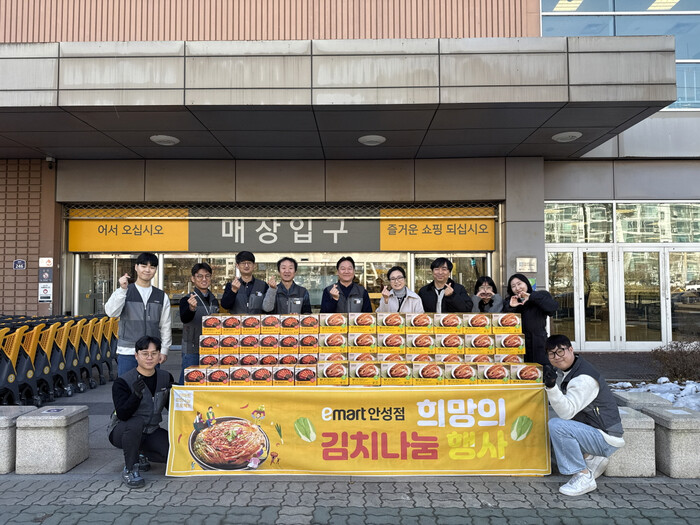 이마트 안성점 윤재승 점장은 "생활밀착형 기업으로서 지역사회에 도움이 되는 일이 당연하다고 생각한다."며, "이번 김치 나눔을 통해 추운 겨울을 맞이한 지역 주민들이 따뜻한 겨울을 보내기를 바란다."고 전했다.