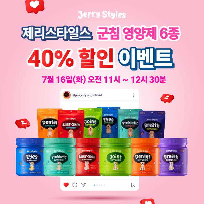 이번 제리스타일스의 쇼핑 라이브는 군침영양제 6종 모두 40프로의 파격적인 할인 혜택과 함께 파우치, 대용량 통 제품 모두 합리적인 비용으로 만나볼 수 있다고 밝혔다.