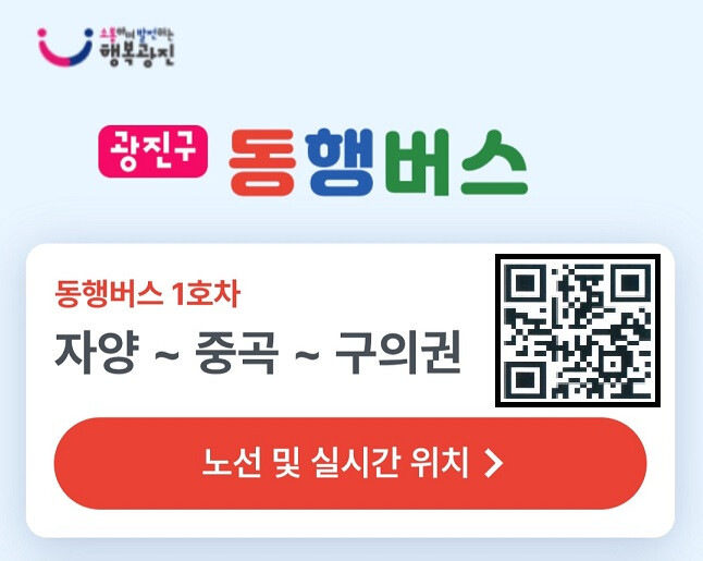 동행버스는 노인과 장애인, 임산부 등 교통약자를 대상으로 광진구 내 주요 복지·건강·문화시설을 중심으로 순환 운행하고 있다. 현재 대형버스 2대가 2개 순환 노선에 투입돼 평일 기준 총 47개 정류장을 하루 6회 운행하며, 운행 시간은 오전 8시부터 오후 4시40분까지다.