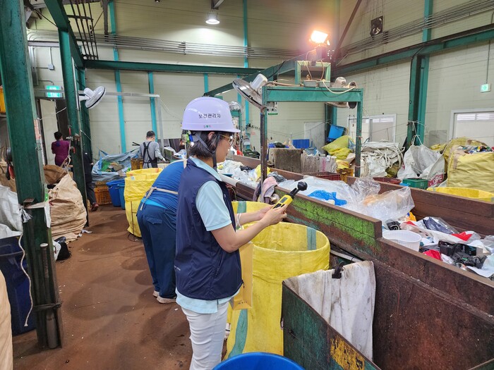 | ▲ 지난 3일 재활용선별장에서 점검반이 현장점검을 진행하고 있다. (사진=용산구청 제공) |