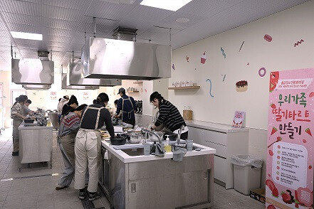 이날 활동에는 청소년과 보호자가 함께한 가족 8팀이 참여했다. 참여자들은 전문 강사의 안내에 따라 타르트 시트를 다루고, 크림을 올리고, 딸기를 장식하는 전 과정을 함께 체험하며 역할을 나누고 협력했다. 요리 과정 속에서 자연스럽게 대화가 이어졌고, 완성된 결과물을 함께 나누며 화기애애한 분위기가 조성됐다.