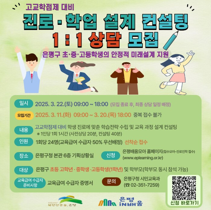 | ▲ 진로·학업 설계 컨설팅 상담 모집 포스터. (사진=은평구청 제공) |