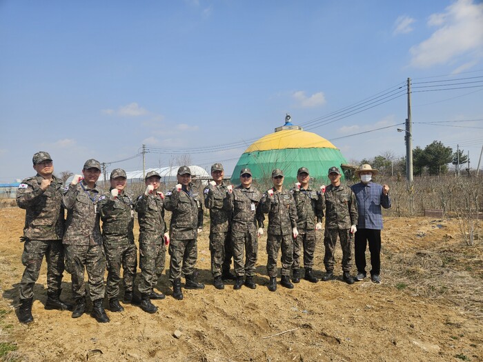 [평택=오왕석 기자] 해군 제2함대 2훈련전대 해상훈련대 군 간부 10여 명은 3월 20일(금) 평택시 관내에 있는 무궁화 농장을 방문해 지역사회와 상생하고 국민과 함께하는 군의 역할을 실천하고자 농촌봉사활동을 실시했다.