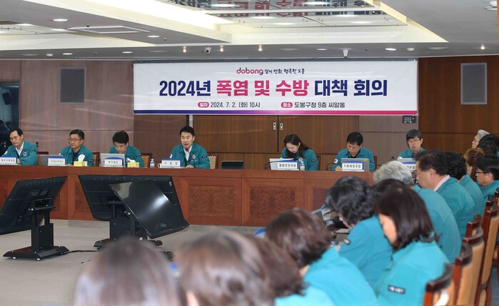 도봉구가 최근 ‘2024년 폭염 및 수방 대책 회의’를 개최했다. 회의에서는 ▲폭염종합대책 추진 ▲(폭염) 구청사 무더위 쉼터 운영 ▲무더위 쉼터 운영 및 취약계층보호 활동 추진 ▲호우 및 태풍 대비·대응 등이 논의됐다. 사진은 회의에 참석한 오언석 구청장이 발언하고 있는 모습. (사진=도봉구청 제공)