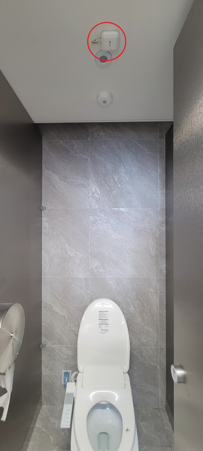 | ▲ 화장실 칸 내부에 지능형 레이더가 설치된 모습. (사진=금천구청 제공) |