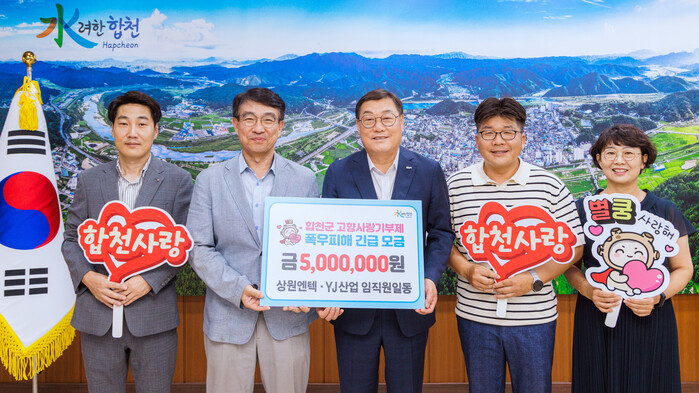 김윤철 합천군수는 “상원그린콘, 상원엔텍, 와이제이산업 임직원 여러분의 꾸준한 관심과 변함없는 고향사랑에 진심으로 감사드린다”며 “기탁해 주신 성금은 수해 복구와 군민 복지 증진을 위한 사업에 소중히 사용하겠다”고 전했다.