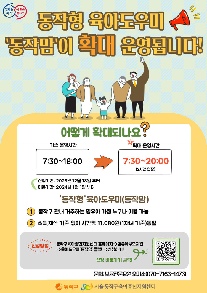 박일하 구청장은 “동작맘은 부모의 양육 부담을 덜고 시설보육의 사각지대를 보완하기 위해 마련됐다”며 “안심하고 아이를 맡길 수 있는 환경을 조성해 ‘동작형 복지’를 실현할 것”이라고 말했다.
