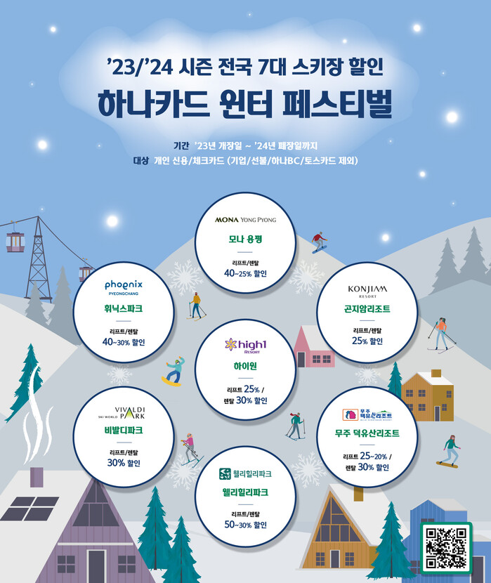 [시민일보 = 여영준 기자] 하나카드는 다가오는 겨울을 맞이해 2023~2024 시즌 전국 7개 스키장 할인 이벤트를 진행한다고 5일 밝혔다.