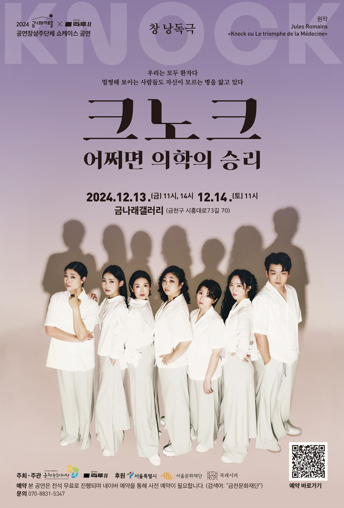 [시민일보 = 여영준 기자] 금천문화재단(대표이사 서영철)은 오는 13~14일 이틀간 금나래갤러리에서 창 낭독극 ‘크노크, 어쩌면 의학의 승리‘ 특별 공연을 선보인다고 5일 밝혔다.