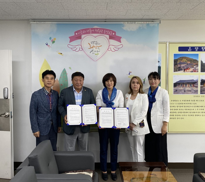 충남 아산시 온양6동 행복키움추진단은 26일 국제로타리3620지구 온양목련로타리클럽과 저소득 취약계층을 위한 후원 협약을 맺고 후원품 전달식을 진행했다. 이번 협약으로 온양목련로타리클럽은 매월 10만원 상당의 후원 물품을 지원하게 됐다. 사진은 협약식에서 관계자들이 기념촬영을 하는 모습. (사진제공=아산시청)