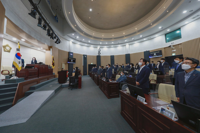 김경희 의장은 개회사를 통해 “오늘부터 21일간 열리는 정례회에서는 2021회계연도 결산 승인과 시정에 관한 질문, 그리고 2022년도 행정사무감사 등 중요한 안건 심사가 예정되어 있다. 동료 의원님들께서는 행정에 대한 견제와 감시, 건전한 비판으로 시민 중심의 행정이 추진되고 시민의 진정한 뜻이 시정에 반영되도록 노력해 주시고, 공직자 여러분께서도 소통과 협의로 원활한 회의 운영이 될 수 있도록 힘써 주시길 바란다. 이번 정례회가 시민의 복리증진과 민생안정에 매진하는 진지한 논의의 장이 되길 기대한다”라고 하였다.