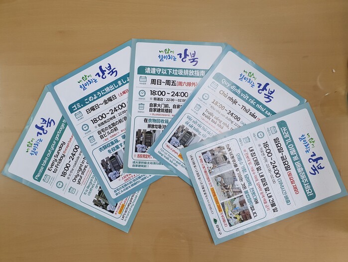 [시민일보 = 홍덕표 기자] 강북구(구청장 이순희)는 다문화가정과 외국인, 시각장애인이 쓰레기 분리배출 방법을 쉽게 이해할 수 있도록 4개국어와 점자로 제작한 홍보물을 배포한다고 20일 밝혔다.