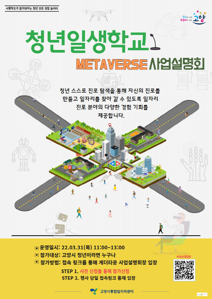 [고양=이기홍 기자] 고양시가 청년일자리 활성화를 위한 ‘청년일생학교’ 메타버스 설명회를 3월 31일 개최했다.
