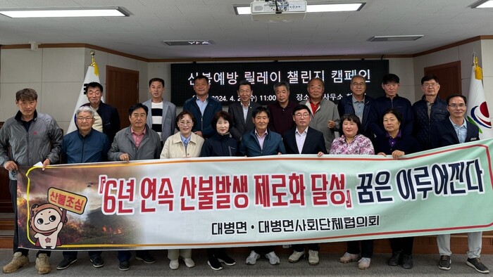 송종갑 대병면 사회단체협의회장은 “산불발생 제로화를 위해 행정에서 추진하고 있는 시책에 사회단체가 선봉에 나서겠으며, 회원과 주민들에게도 홍보해 산불발생 제로화 달성에 적극 협조하겠다”고 말했다.