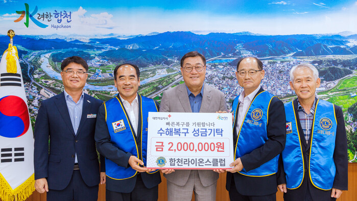 정종락 합천라이온스클럽 회장은 “예기치 못한 재해로 어려움을 겪고 있는 군민들께 조금이나마 보탬이 되길 바란다”며, “앞으로도 지역사회와 함께하며 나눔과 봉사를 실천해 나가겠다”고 전했다.