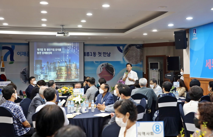 이재준 경기 수원시장이 민선8기 출범을 맞아 최근 권선구 세류1·2·3동을 차례로 방문해 군공항 이전, 미래형 광역교통망 구축 등 민선8기 공약과 시정방향을 설명했다. 사진은 이 시장이 동을 방문해 공약 및 시정방향을 설명하고 있는 모습. (사진제공=수원시청)
