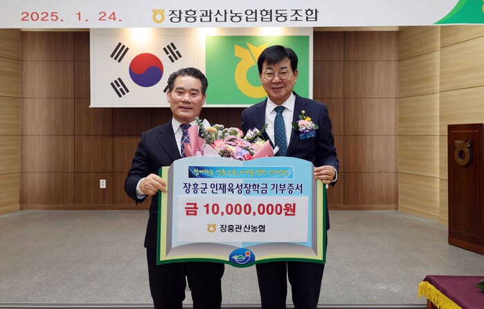 이날 기부금 전달식은 장흥관산농협 정기총회를 맞이해 주요 관계자들이 참석한 가운데 장흥관산농협에서 진행됐다.
