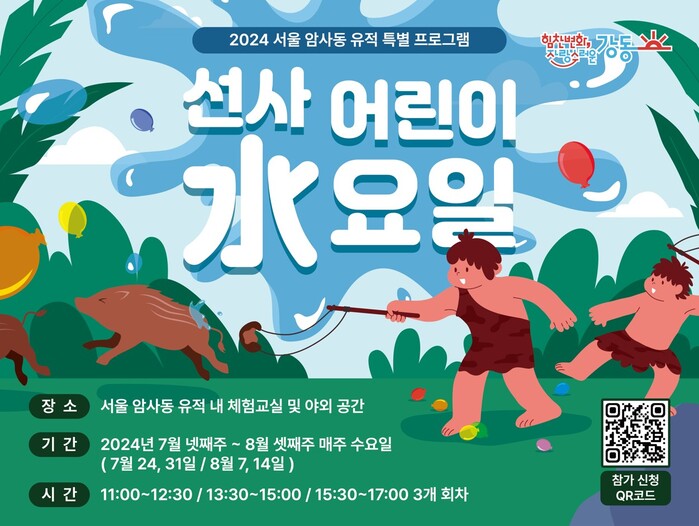 [시민일보 = 이대우 기자] 서울 강동구(구청장 이수희)가 여름방학을 맞아 암사동 유적내 선사체험교실에서 특별한 물놀이 체험 ‘선사어린이 水요일’을 24일부터 운영한다.