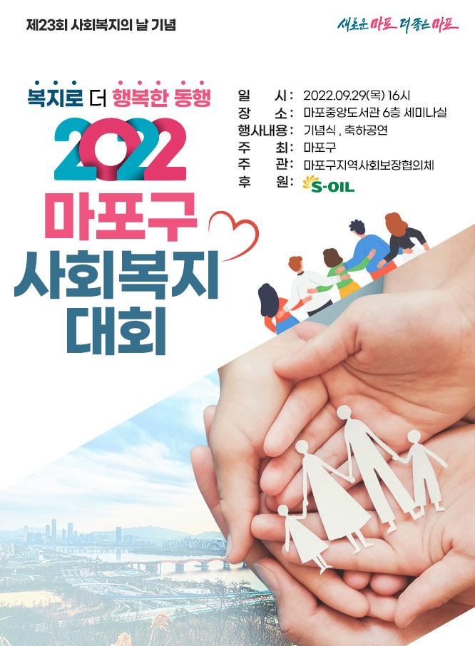 마포구지역사회 보장협의체가 주최 및 주관하는 이번 행사는 '복지로 더 행복한 동행'이라는 슬로건으로 진행되며, 사회복지 종사자 및 관계공무원 등 150여명이 참석한다.