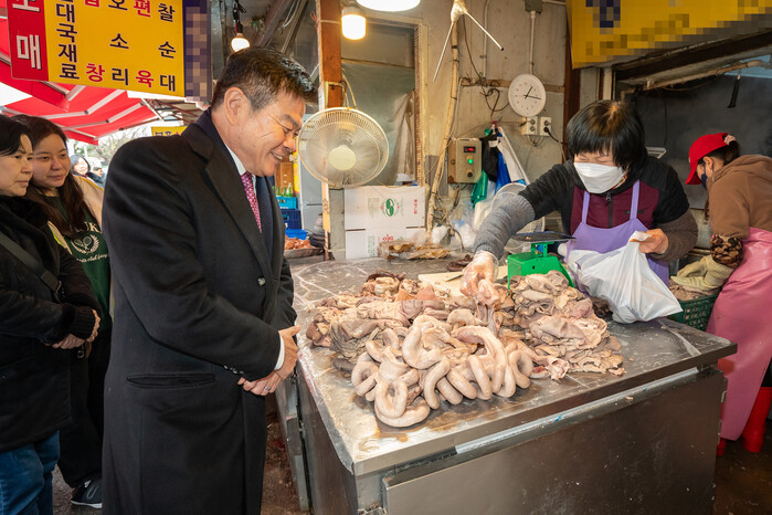 순대 1kg당 4,000원에 판매돼 적은 금액으로도 푸짐한 ‘순대한상’을 즐길 수 있는 이 순댓집을 지난 29일 이필형 동대문구청장이 방문했다.