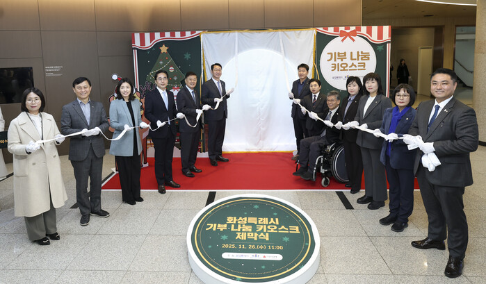 이날 경기사회복지공동모금회·화성시사회복지재단과 함께 개최한 키오스크 제막식에는 정명근 화성특례시장, 배정수 화성특례시의회 의장, 시의원, 황운성 화성시복지재단 대표이사, 김효진 경기공동모금회 사무처장 등이 참석해 자리를 빛냈다.