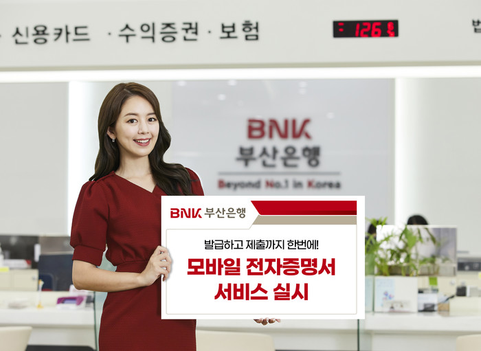 [시민일보 = 여영준 기자] BNK부산은행은 21일 부산은행 모바일뱅킹 앱(App)을 통해 각종 증명서 발급 및 제출이 가능한 ‘전자증명서 서비스’를 실시한다고 밝혔다.