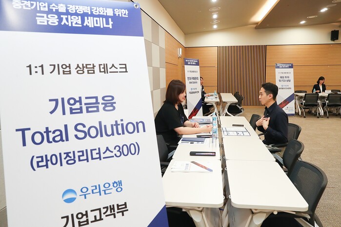특히 세미나 진행과 함께 우리은행 기업고객부, 외환사업부 등 직원들이 직접 컨설팅 데스크를 운영, 기업금융·수출입금융·세무 상담 등 기업경쟁력 강화를 위한 1대1 맞춤형 컨설팅을 제공해 참석자들로부터 큰 호응을 받았다.